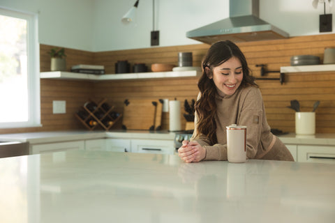 A: You can wash your Ethio tumbler with warm, soapy water or in the dishwasher. To clean the coffee grounds sleeve, we recommend hand-washing it with mild soap and water.